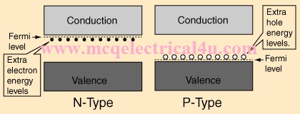 Q.45 When PN- junction is formed, the N region has _____and ____